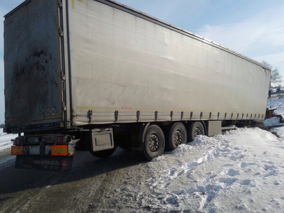 Прицеп полностью перекрыл одну полосу движения