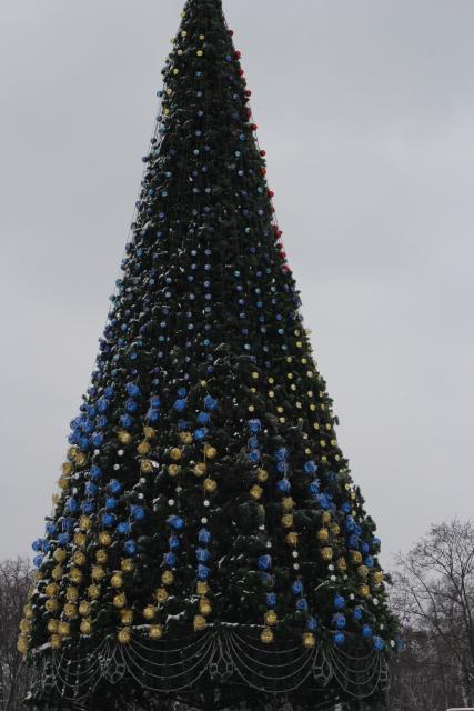 На главном символе Нового года появились новые украшения – сине-желтого цвета (цвета государственного флага Украины).