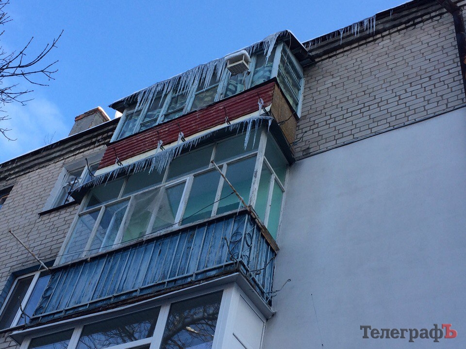 В Кременчуге, начиная с выходных, крыши и балконы домов оккупировали сосульки. Руководитель УЖКХ Иван Москалик сообщил, что жителям по данному поводу нужно жаловаться в «службу помощи мэра» (15-63), управляющие компании и ГСЧС.