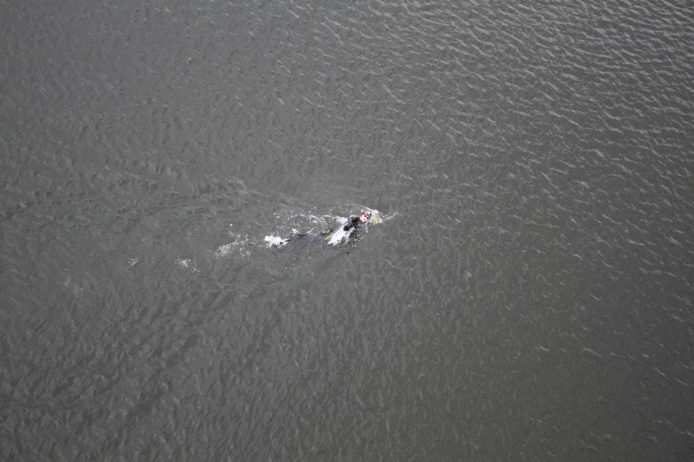 Заплыв проходил рядом с мостом. Сергей переплыл Днепр в одну сторону, немного передохнул и - назад. В общей сложности кременчужанин преодолел 1,5 км за 26 минут. Поскольку температура воды была +13С, плыть пришлось в гидрокостюме, перчатках и ластах. По словам Сергея, было холодно только лицу)))