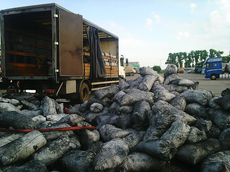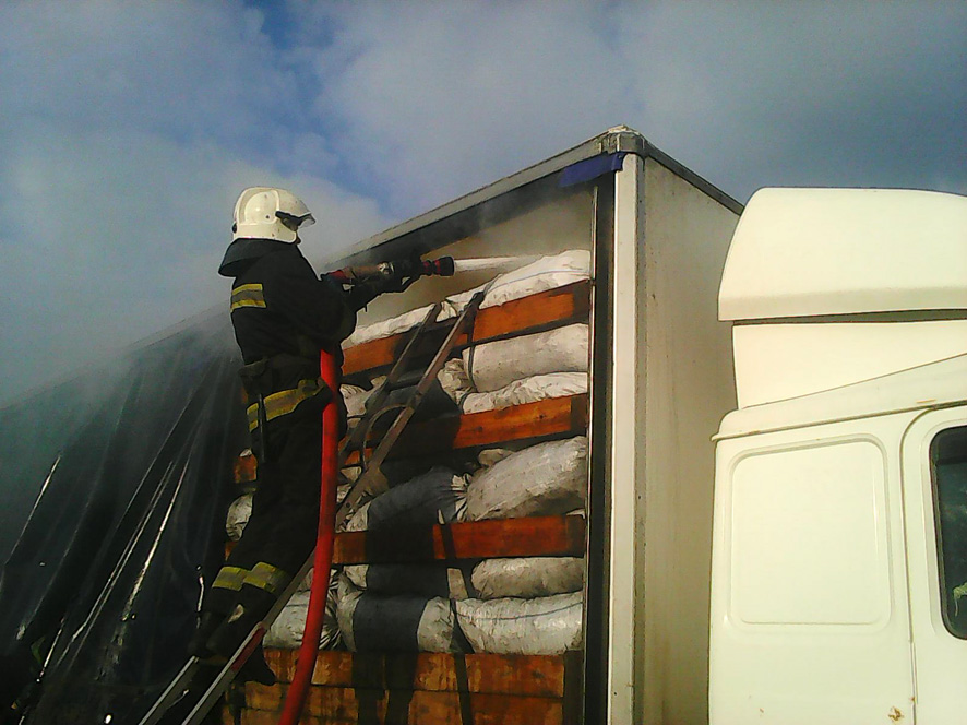 Пожар начался в прицепе во время стоянки, в прицепе перевозили 10 тонн древесного угля.