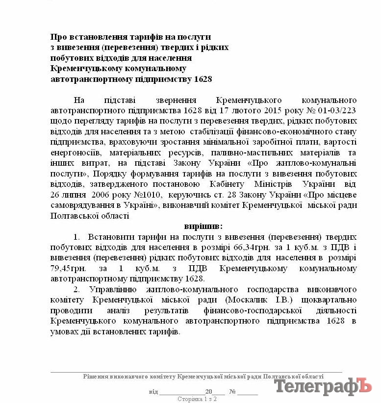 Кременчужанам с нарушением законодательства повысили тарифы на вывоз мусора
