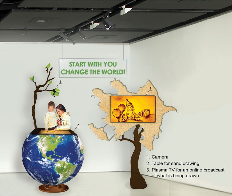 - Эта выставка проходит уже четвертый год в Азербайджане, - рассказывает Татьяна. - Она проходит в заповеднике "Гала" в Баку. Все художники, которые принимают участие, делают произведения искусства из того, что мы обычно выбрасываем. Мы делали большую конструкцию из папье-маше на тему "Начни с себя - меняй мир". У нас был глобус, в который встроен стол для рисования и плазма с картой Азербайджана, на которой отображалось все происходящее на столе.