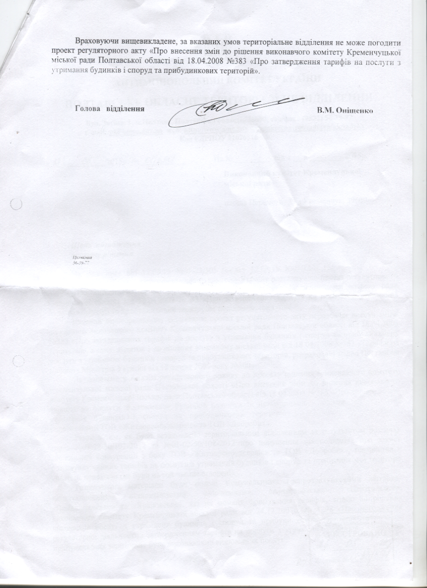 Полный документ письма АМКУ исполкому Кременчугского горсовета: