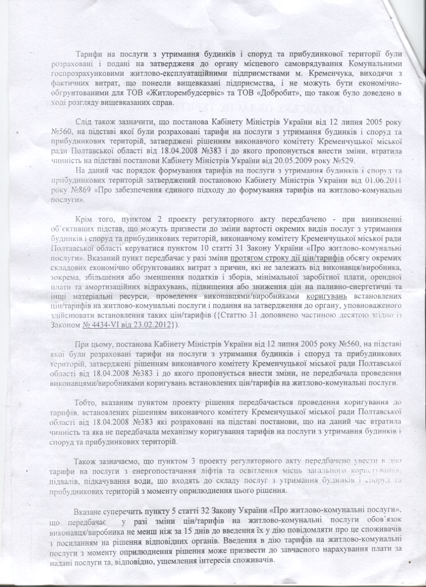 Напомним, АМКУ не согласовал повышение тарифов в Кременчуге и указал, что их нужно рассчитывать заново — для управляющих компаний, а не для жилищно-эксплуатационных предприятий, для которых они в свое время утверждались. Кроме того, Антимонопольный комитет указал, что нормативный документ, согласно которого рассчитывались тарифы в 2008 году, утратил силу и, кроме того, не предусматривал корректировку тарифов.