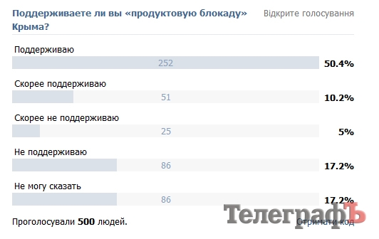 За «блокаду» проголосовали 58% читателей сайта telegraf.in.ua и 50% подписчиков нашей группы в социальной сети vk.com