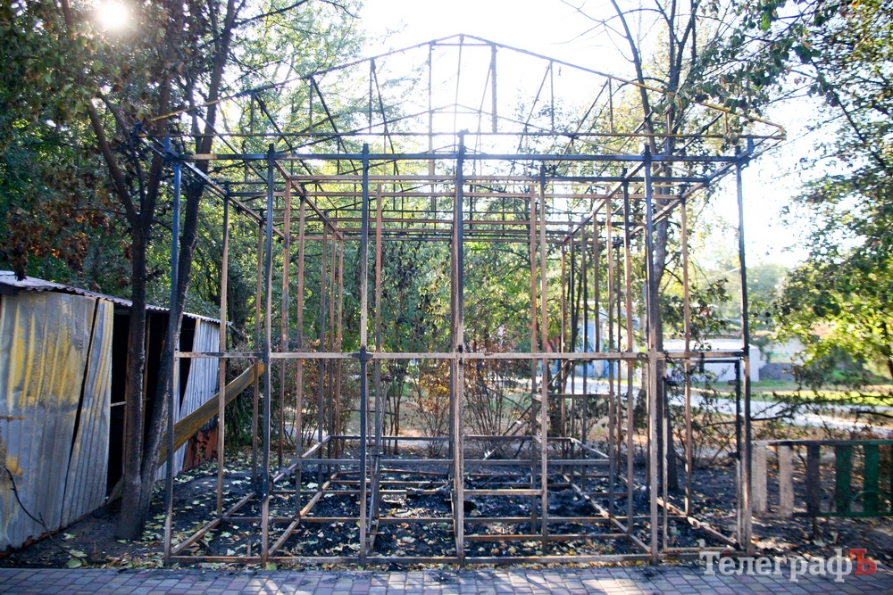 Как позже выяснилось - аттракционы в парке подожгли - погиб ёжик.