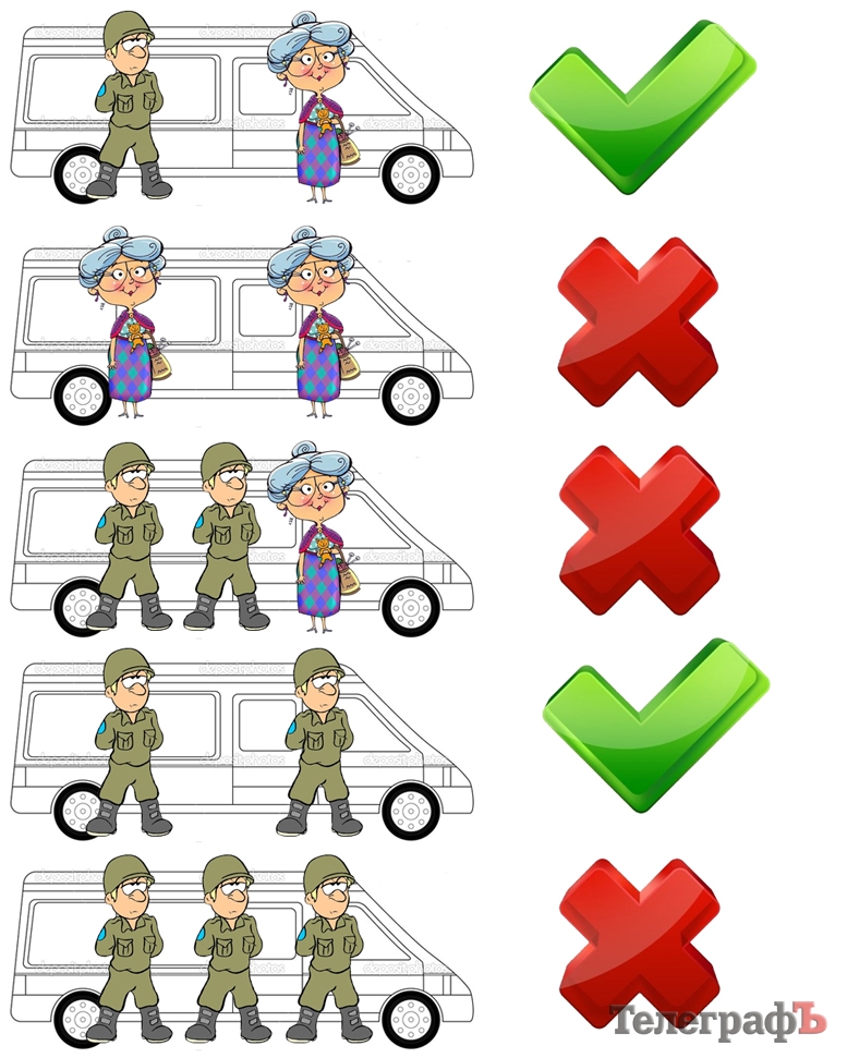 Таким образом, если участник АТО зашел в маршрутку, а там одно льготное место занято "бабушкой" или другим участником АТО, он имеет право ехать бесплатно. Если участник АТО заходит в маршрутку, а там одно место занято "бабушкой (или бойцом), а другое место другим участником АТО, он должен заплатить. Две "бабушки" не могут проехать по "льготному". Доходчивее - в инфографике от "Телеграфа".