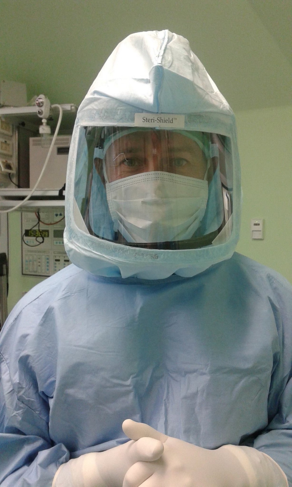 Израильские медики работают вот в таких шлемах с воздушным поддувом. Они нужны для стерильности во время операций по протезированию, напрмер, тазобедренного или коленного сустава