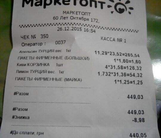 Тисячу гривень витратили на закупівлю м'яса, близько 1200 грн - на цитрусові та солодощі.