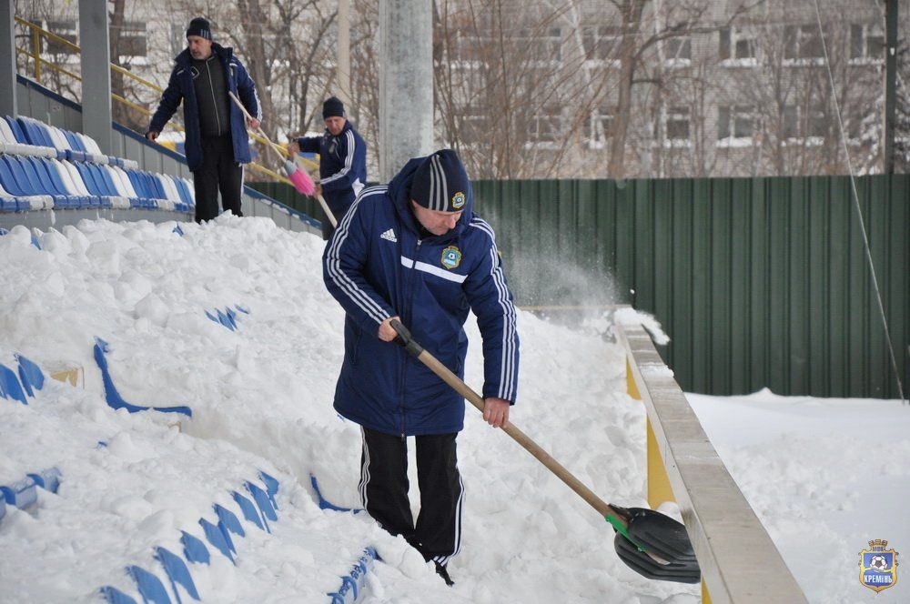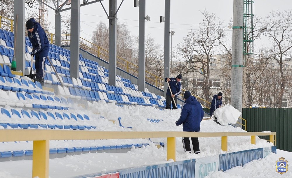 До початку навчально-тренувального збору працівники клубу організували міні-суботник з прибирання снігу. Вже третій день адміністрація та тренери «Кременя» (першої та дитячих команд) розчищають сніг зі стадіону «Кремінь-Арена».