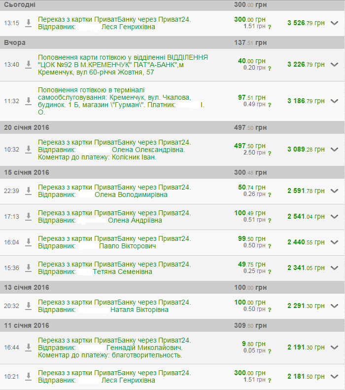Протягом 11-22 січня кременчужани перерахували на картку 1645.29 грн.