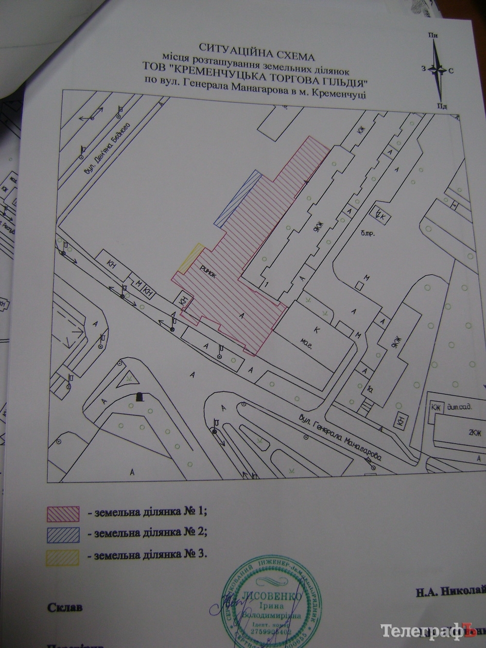 Найцікавіше, що йдеться про ділянку, яка прилягає до ринку «Крюків’янка» на Раківці і зараз знаходиться в користуванні ТОВ "Кременчуцька торгова гільдія". Це торговельне підприємство й побудувало там ринок. Виникає резонне питання, як будувати за бюджетні кошти на землі, яку орендує бізнес? Додатковим рішенням на сесію з'явився проект про поділ земельної ділянки — ту частину, яка призначалася під благоустрій, «Кременчуцька торгова гільдія» повертає в запас земель міста (на плані фона позначена штриховкою). Але рішення сесії ще не прийнято — сесія відбудеться 2 лютого. Натомість УКБ вже фактично отримало команду будувати на землі, яку орендує комерційна структура. Звідки ж такий поспіх? І звідки взявся сам проект?