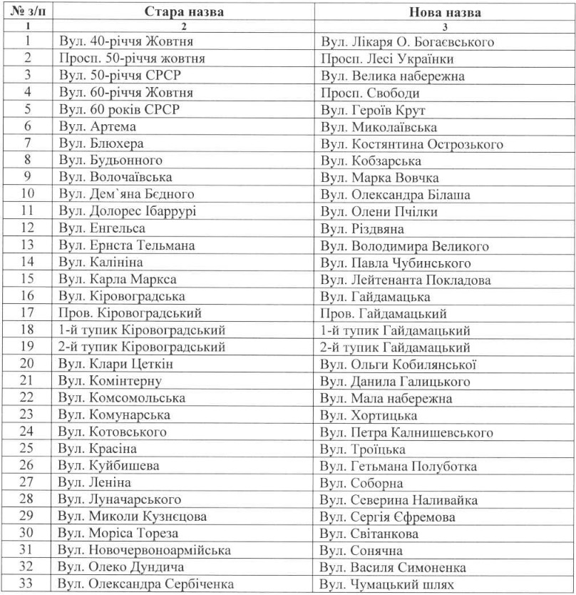 ОФИЦИАЛЬНО: Мэр Малецкий переименовал кременчугские улицы