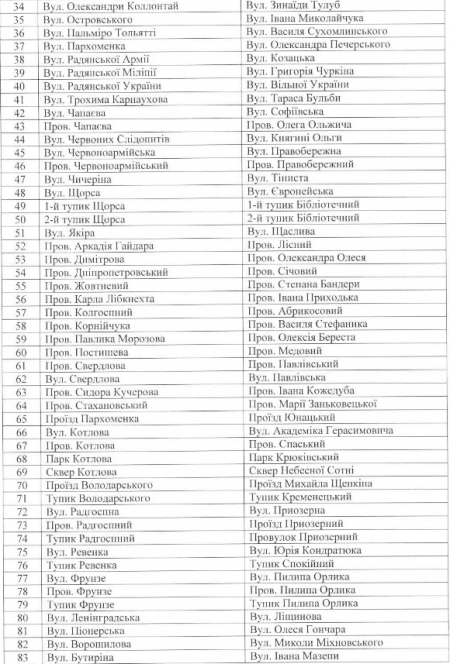 Новые названия улиц (чтобы увеличить список - кликните на него)