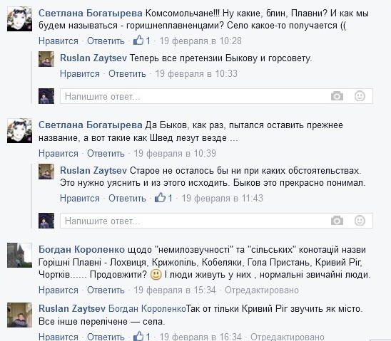 Светлана Богатырева: Комсомольчане!!! Ну какие, блин, Плавни? И как мы будем называться - горишнеплавненцами? Село какое-то получается ((