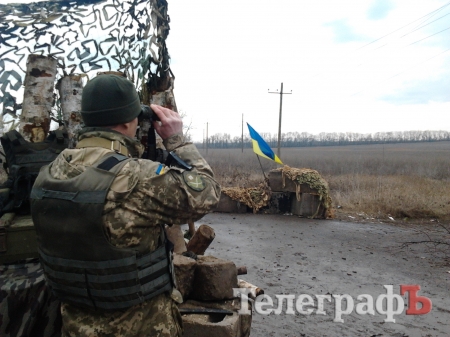 Прес-офіцер оперативно-тактичної групи Маріуполь Олександр Кіндсфатер, показуючи край села, розповів, що ситуація стабільно напружена (станом на 14.02.16):