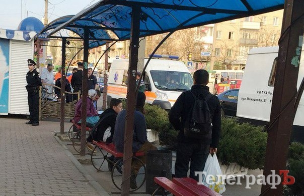 На остановке "центральный рынок", в районе "Викома" на лавочке лежит тело. Рядом стоят медики и патрульные.