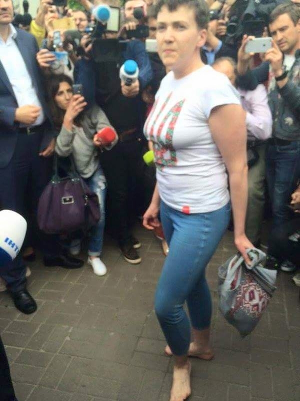 Слава Україні! Дякую матері, що дочекалася. Дякую сестрі, що воювала. Не було б такої сестри, була би мертва. Дякую народу України й всього світу. Народ це велика сила. Як би народ не говорив, політики нічого б не робили. Напевно суть демократії в тому, щоб народ говорив і його чули. Народ змусив себе чути. Бо ми українці. Народ клав своє життя і не одне. Ми досягнемо, щоб нас голос не залишався непочутим. Дякую всім хлопцям, що залишилися живими і які померли за нашу Україну. Прошу вибачення, що я ще жива. Але я завжди готова йти в бій за Україну до переможного кінця. Україна має право бути. Бути незважаючи ні на чию хвору голову. Бо ми українці. Бо ми народ. Ми нація. Я не хочу говорити погано про людей, сподіваюсь що з цих відчуттів у мене виникне мудрість. Я не хочу, щоб люди хотіли війни. Хочу, щоб люди хотіли миру. Але, на жаль, мир можливий через війну. Буває такий рубіж, після якого іншого шляху немає. ... Їм необхідно вставати з колін, а нам необхідно зробити так, щоб вони сюди не прийшли. Україна понад усе! Слава Україні!,- зазначила Надія Савченко.