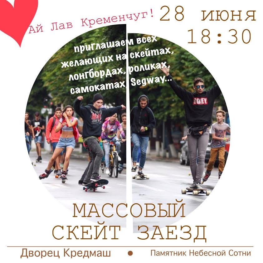 Запрошуються всі бажаючі на скейтах, роликах, лонгбордах, самокатах, BMX, segway, та інших альтернативних засобах пересування.