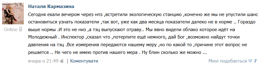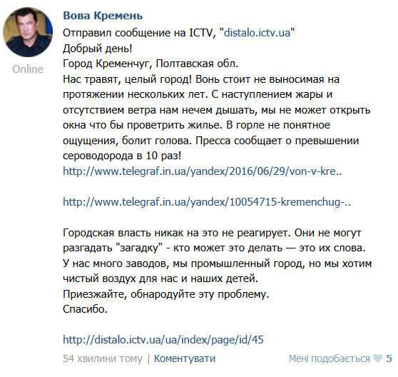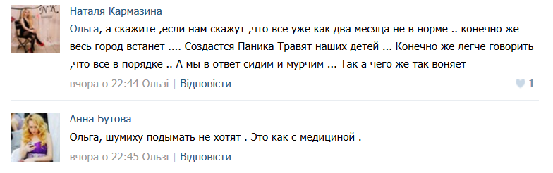 Кременчужане объединились против вони и бездействия властей в группе ВК в социальной сети «За чистый Кременчуг». В группе уже больше 130 человек. Кременчужане делятся впечатлениями от того, как пережили очередную ночь, возмущаются властями, которые не могут остановить это безобразие, а также решают, что делать и как жить дальше…