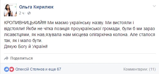 Отметим, что не все жители города "в захваті" от названия Кропивницкий - недавно против такого переименования кировоградцы проводили митинг.
