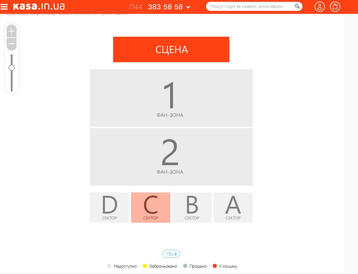 Сейчас на kasa.in.ua доступно всего 11 билетов в сектор С по 750 гривен.