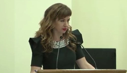 Нина Дашко говорит монотонно, без микорофона суть выступления трудно разобрать.