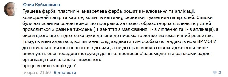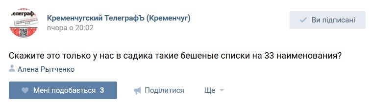 Кременчужане обсуждают списки, которые выдают родителям в детсадах
