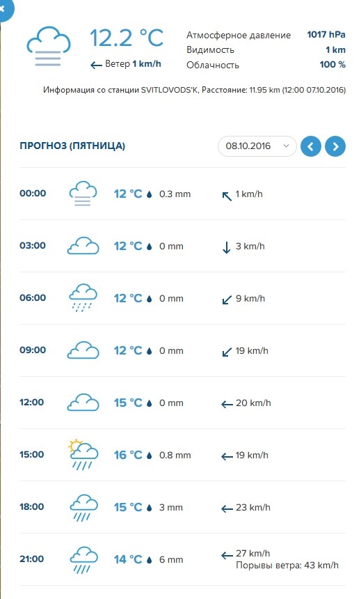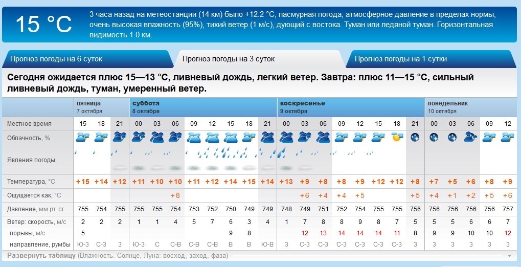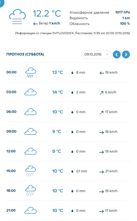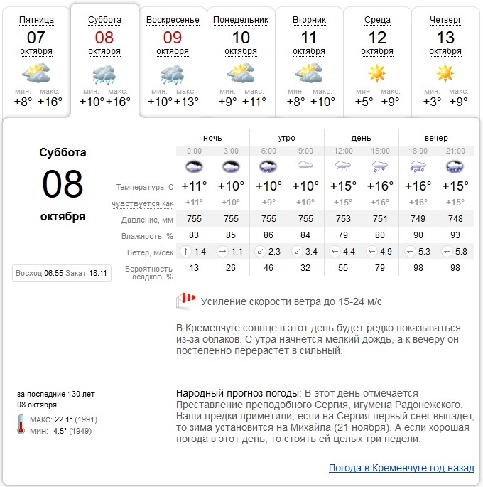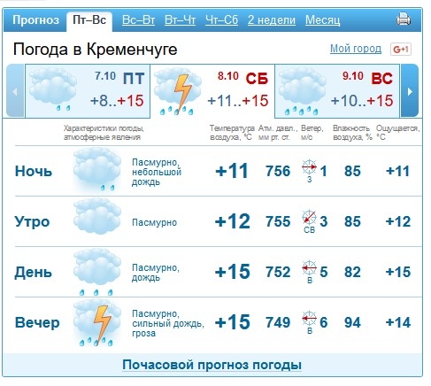 Ливні з грозами обіцяють також Sinoptik, Gismeteo та rp5. У суботу, 8 жовтня, можливе також посилення вітру до 15-24 м/с.