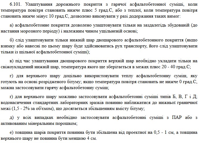 Вот действующие требования Технических правил по ремонту и содержанию улиц и дорог населенных пунктов, утверждённые приказом №54 Минрегионразвития от 14.02.2012 года. Полная версия – на сайте Верховной Рады.