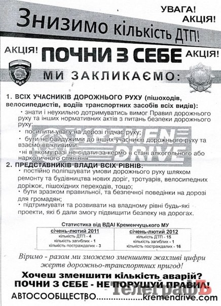 Автомобилисты и работники ГАИ Кременчуга проведут акцию «Начни с себя»!