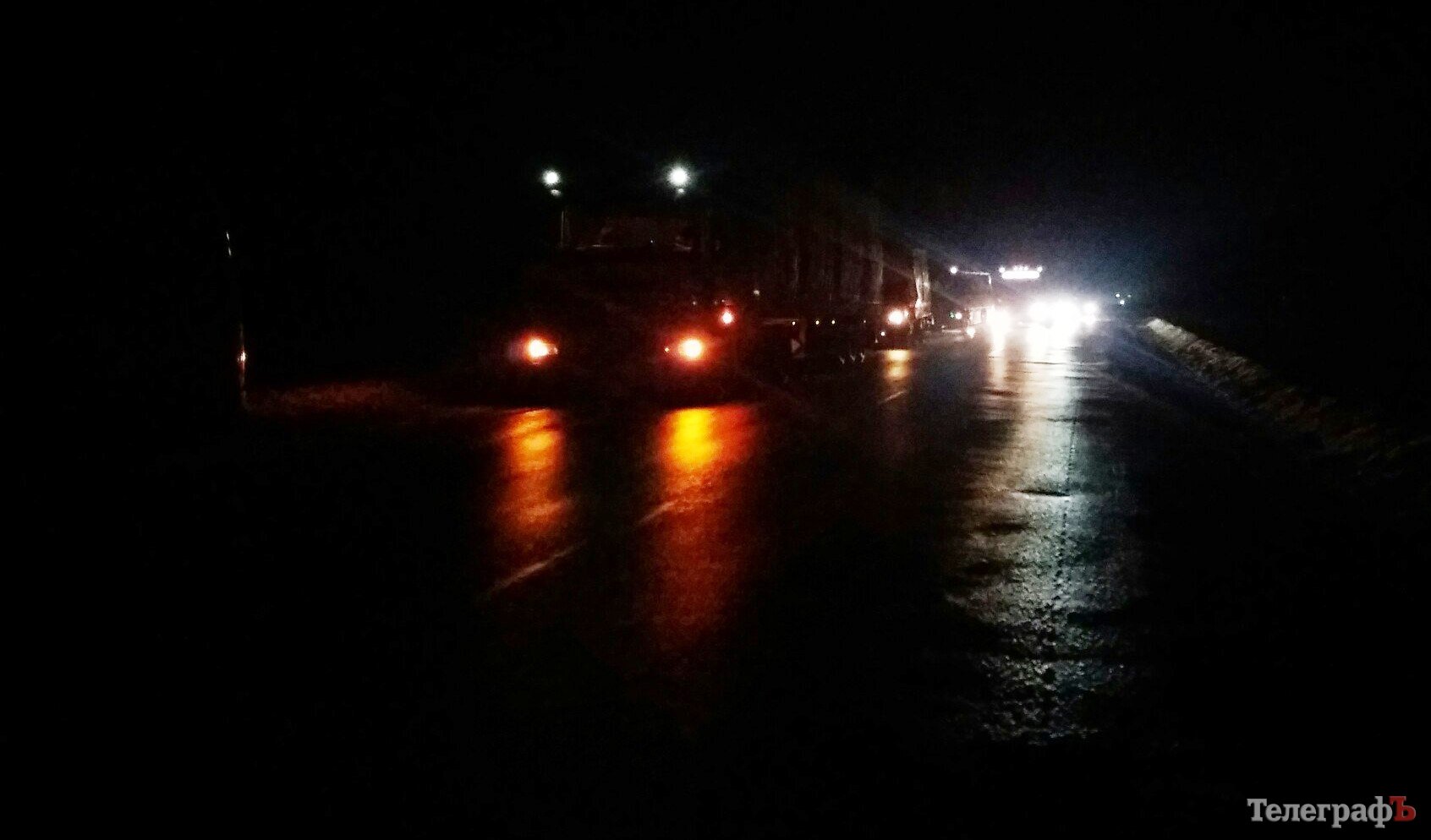 Перед въездом в город со стороны Полтавы остановились легковые и грузовые автомобили