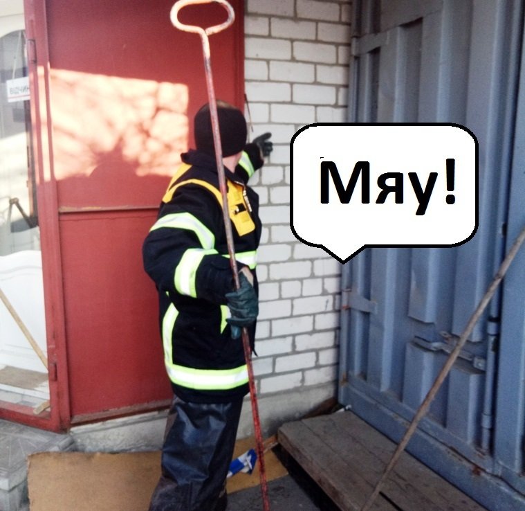 Животное залезло в проём между металлическим контейнером и кирпичной стеной, а вылезти не смогло