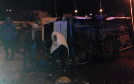 После ДТП микроавтобус перевернулся