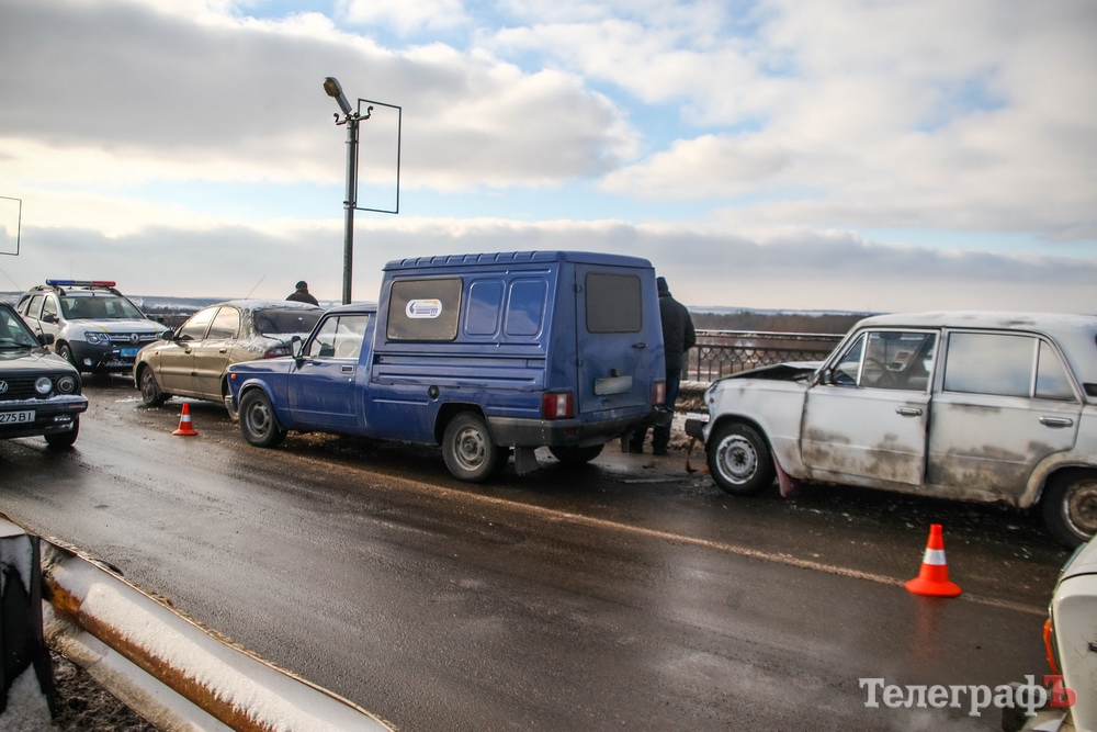 После аварии образовалась пробка на мосту и в центре города