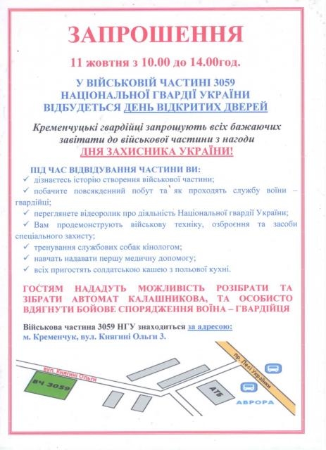 У військовій частині 3059 Національної гвардії України відбудеться День відкритих дверей