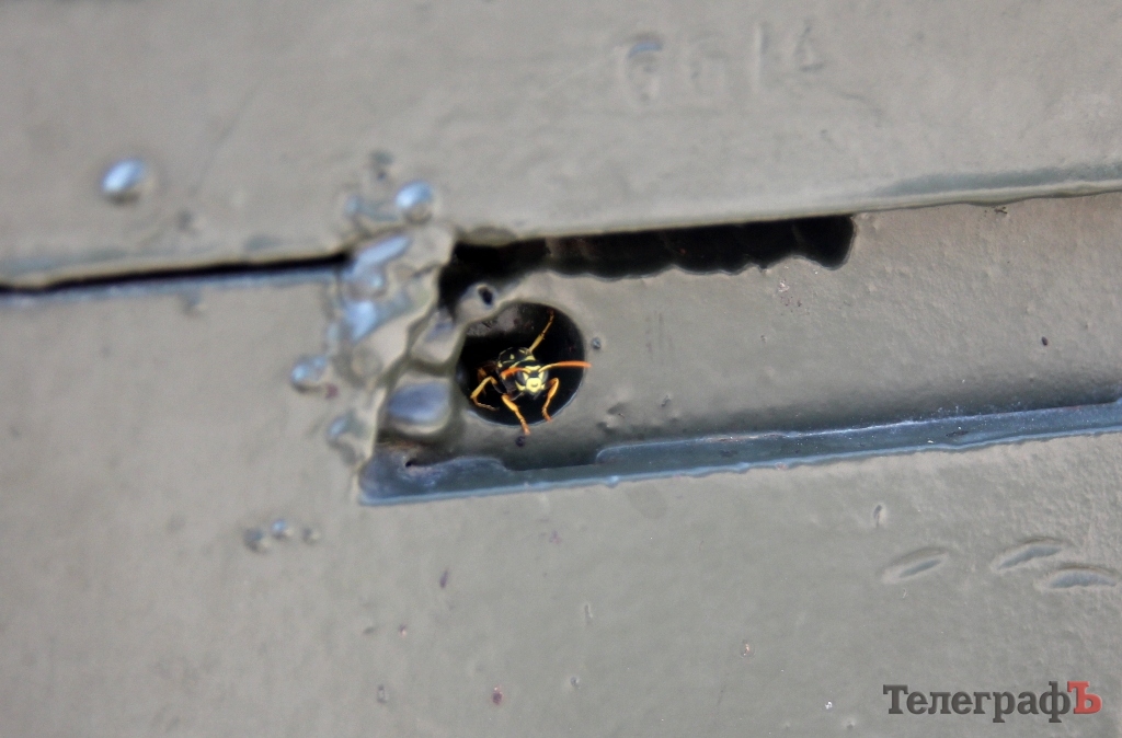 В одной из пушек, которые стоят в парке Мира, осы сделали себе гнездо