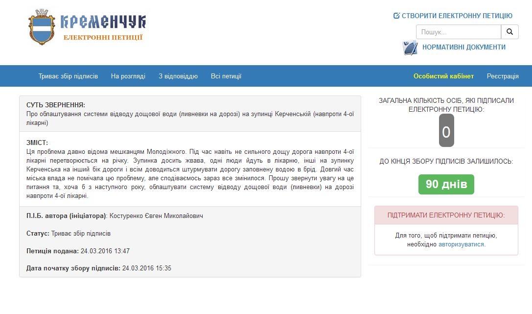 Мера просять облаштувати систему відводу дощової води навпроти 4-ї лікарні, хоча б з наступного року
