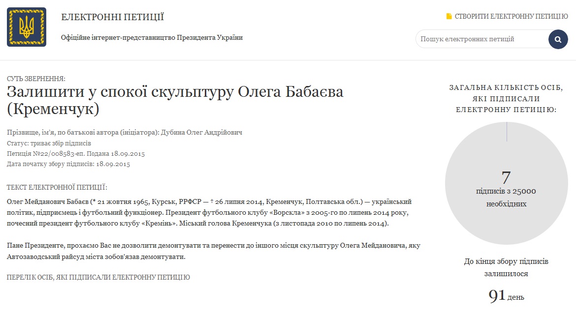 На сайте Президента появилась петиция в поддержку памятника Бабаеву