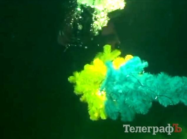 Кременчужане, вместе с друзьями со всей Украины установили в затопленном карьере на Днепропетровщине сине-жёлтую ёлку