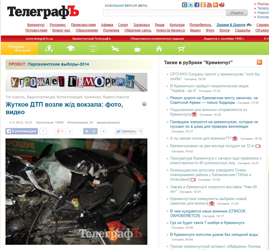 Самые популярные новости, которые прочитало наибольшее количество пользователей на сайте "ТелеграфЪ" с 30 октября по 6 ноября 2014 года